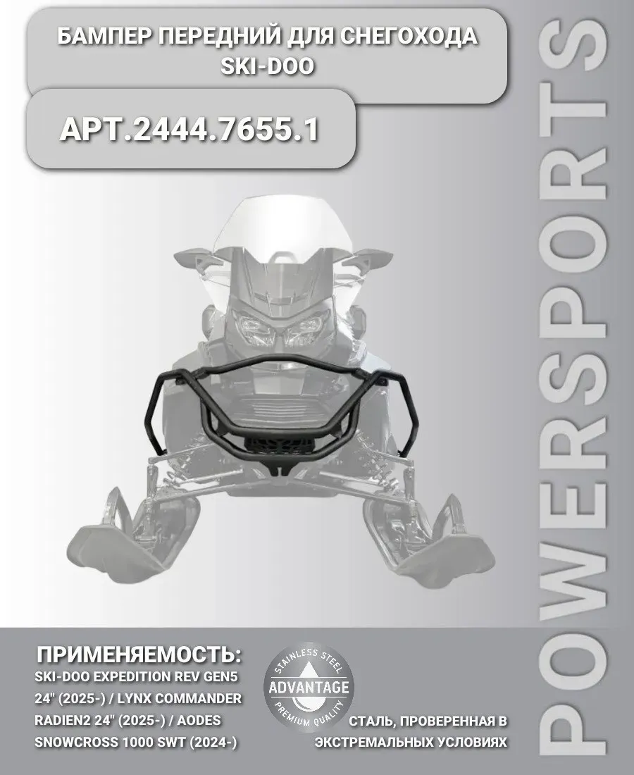 Передний бампер с интегрированной боковой защитой для снегоходов на платформе REV GEN5 (BRP Ski-Doo) и Raiden 2 (Lynx). Предназначен для защиты передней части и боковых поверхностей двигателя от механических повреждений.