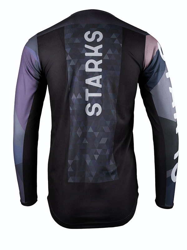 Основная ткань – трикотаж для активных видов спорта, где требуется быстрое высыхание и продуваемость, что помогает сохранить прохладу, сухость и комфорт. Эластичные манжеты на шее и рукавах не мешают движениям а удлиненная спинка помогает держать джерси в заправленном виде. В размерной сетке джерси учтено надевание на защиту.