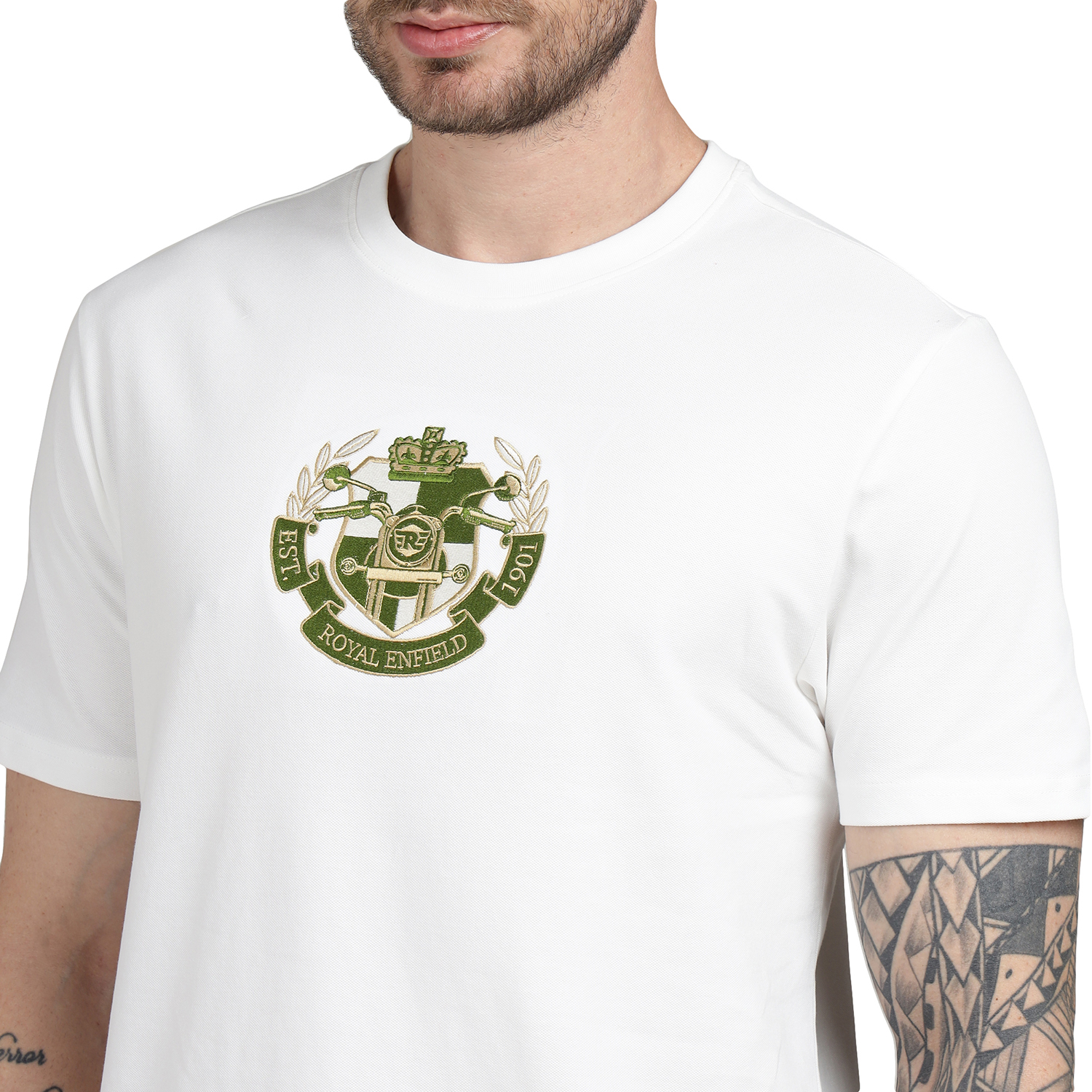 Футболка из коллекции повседневной одежды Royal Enfield. Изделие выполнено из 100% хлопка. Модель имеет классический крой, круглый вырез горловины и короткие рукава. Материал обеспечивает комфорт и воздухопроницаемость при повседневной носке.