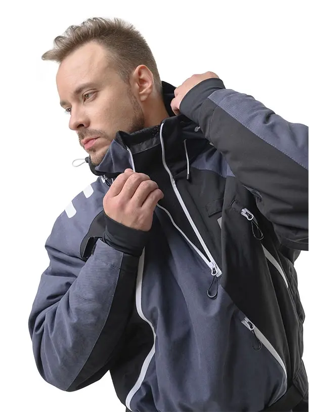 Утеплитель 250 г в зоне груди, спины и ног, 100 г в капюшоне, рукавах надежно защитит от мороза и ветра.