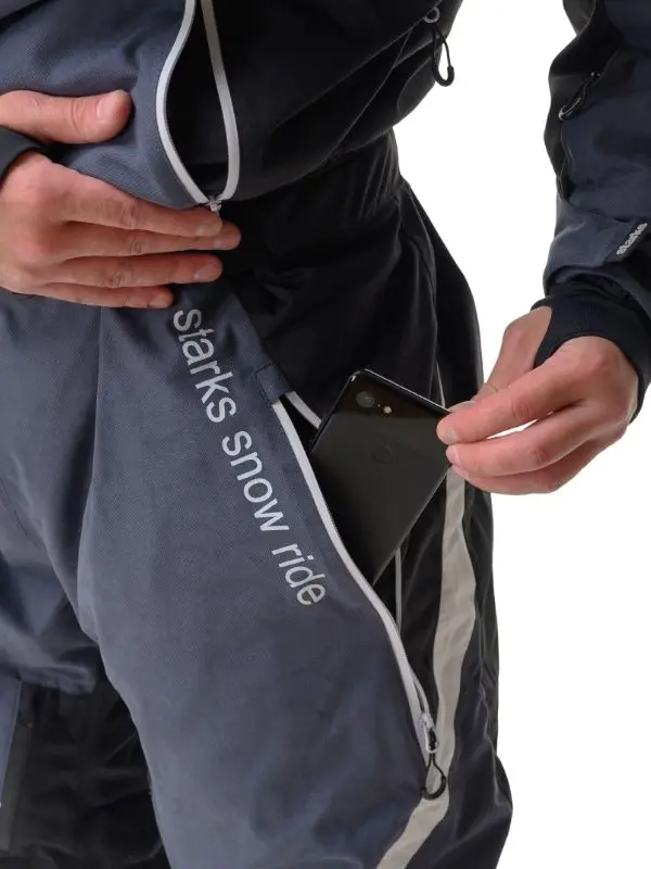 Анатомический крой снегоходного комбинезона обеспечит удобство во время езды.