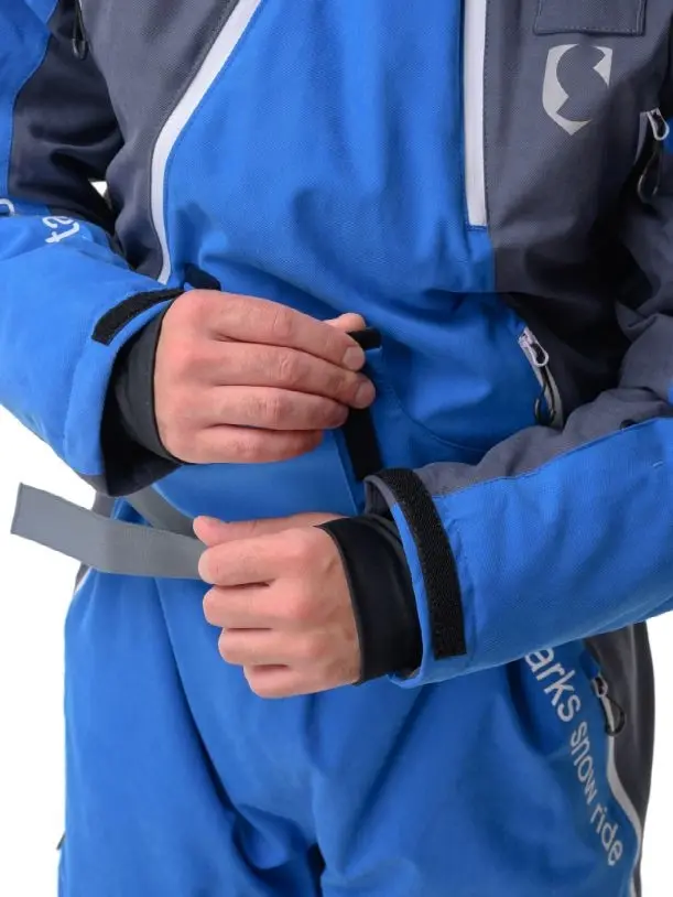 Снегозащитные манжеты на рукавах и снегозащитные «юбочки» в низу брюк не позволят влаге и снегу проникнуть в комбинезон.