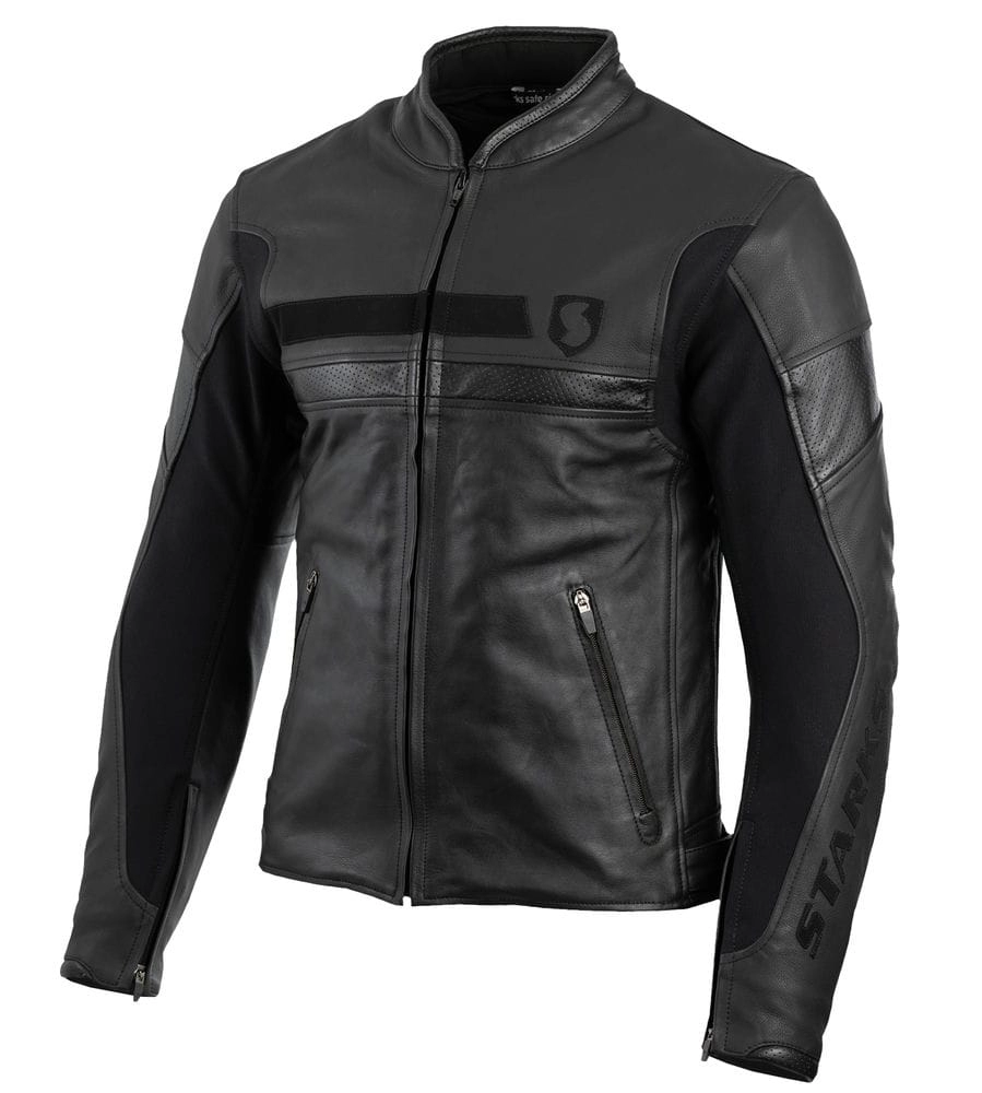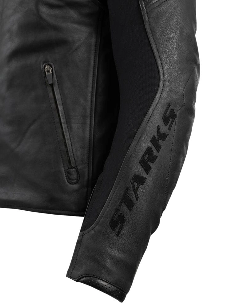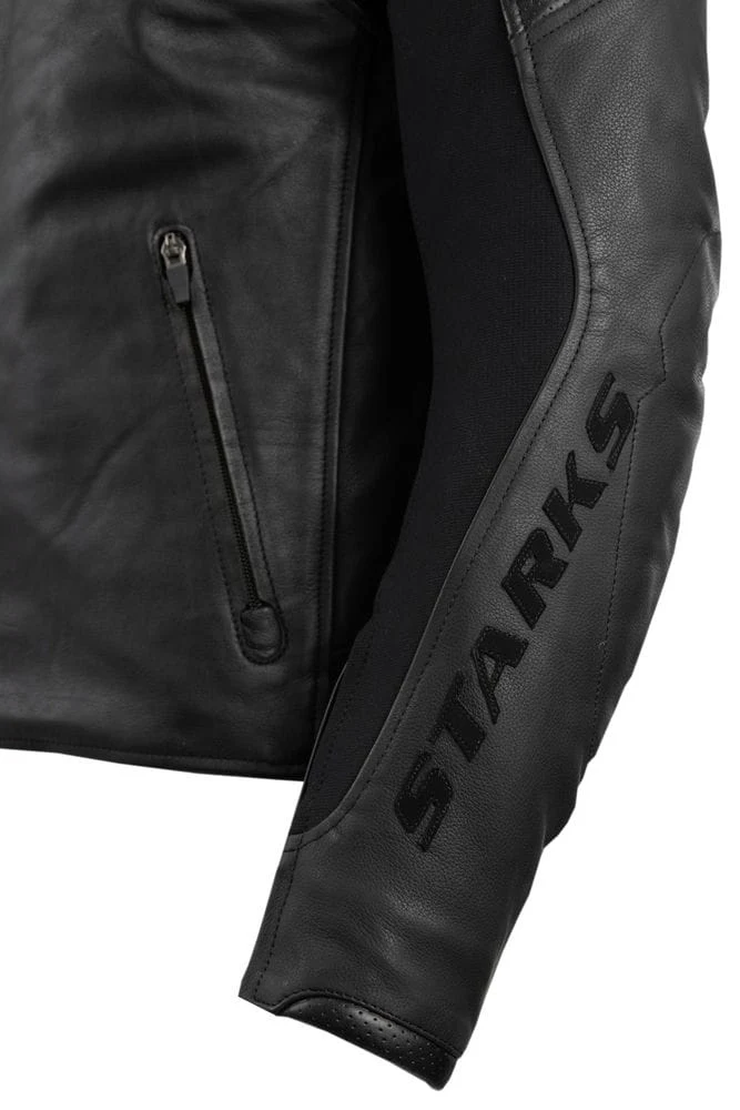 Кожаная мотокуртка STARKS SN №1 (SKIN number 1), черный - спортивно-универсальная городская куртка с полным комплектом защиты для вашей безопасности при езде на мотоцикле.