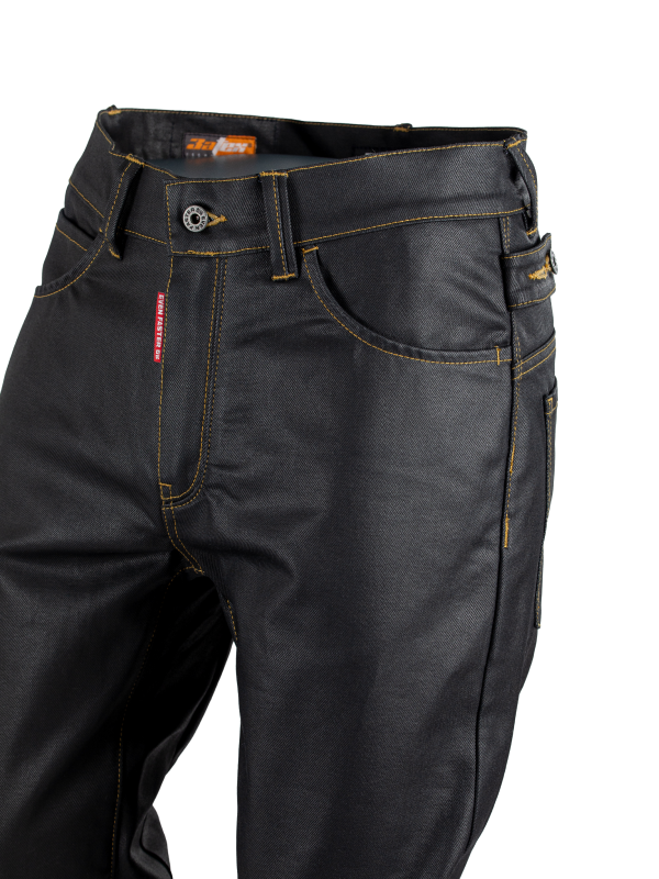 - Верх мотоджинсов выполнен из джинсовой ткани CORDURA DENIM ® с покрытием, имитирующим кожу.