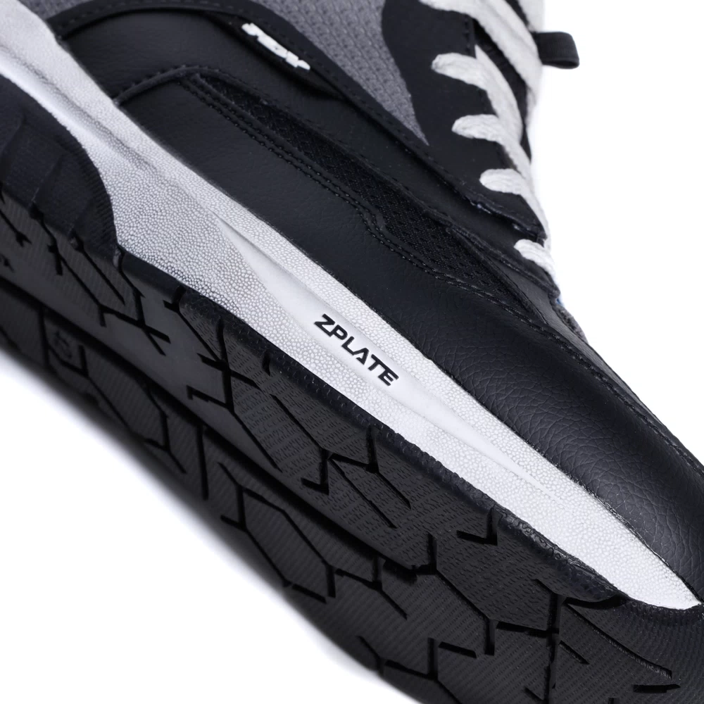- Межподошва: встроенная пластина Zplate® — сочетает продольную гибкость (естественные движения стопы при ходьбе) и поперечную жёсткость (защита от поперечного сжатия при падении).
